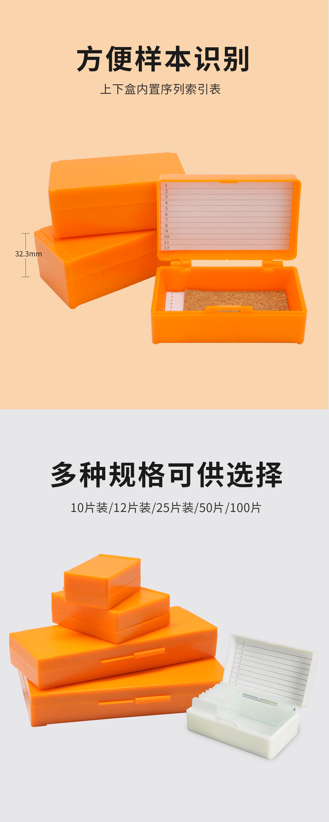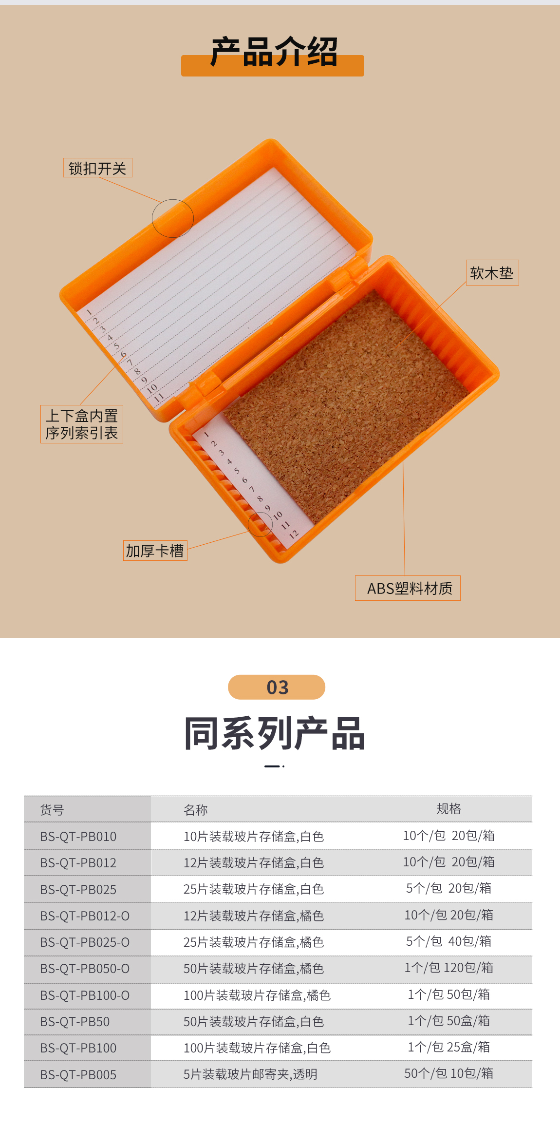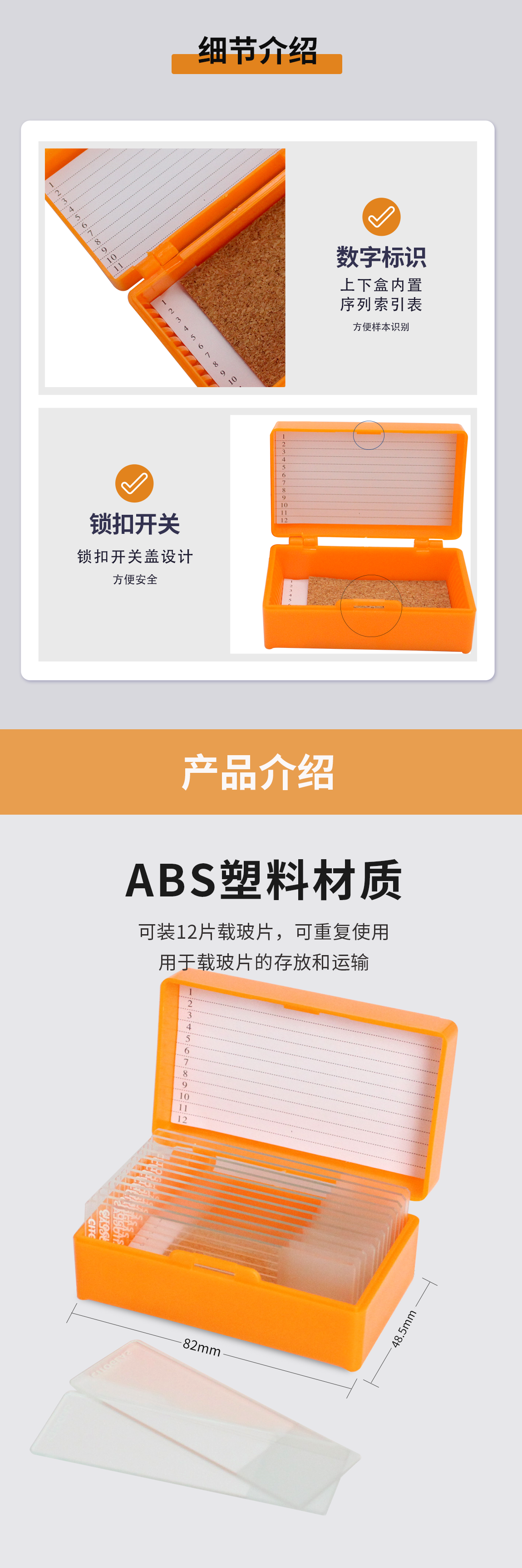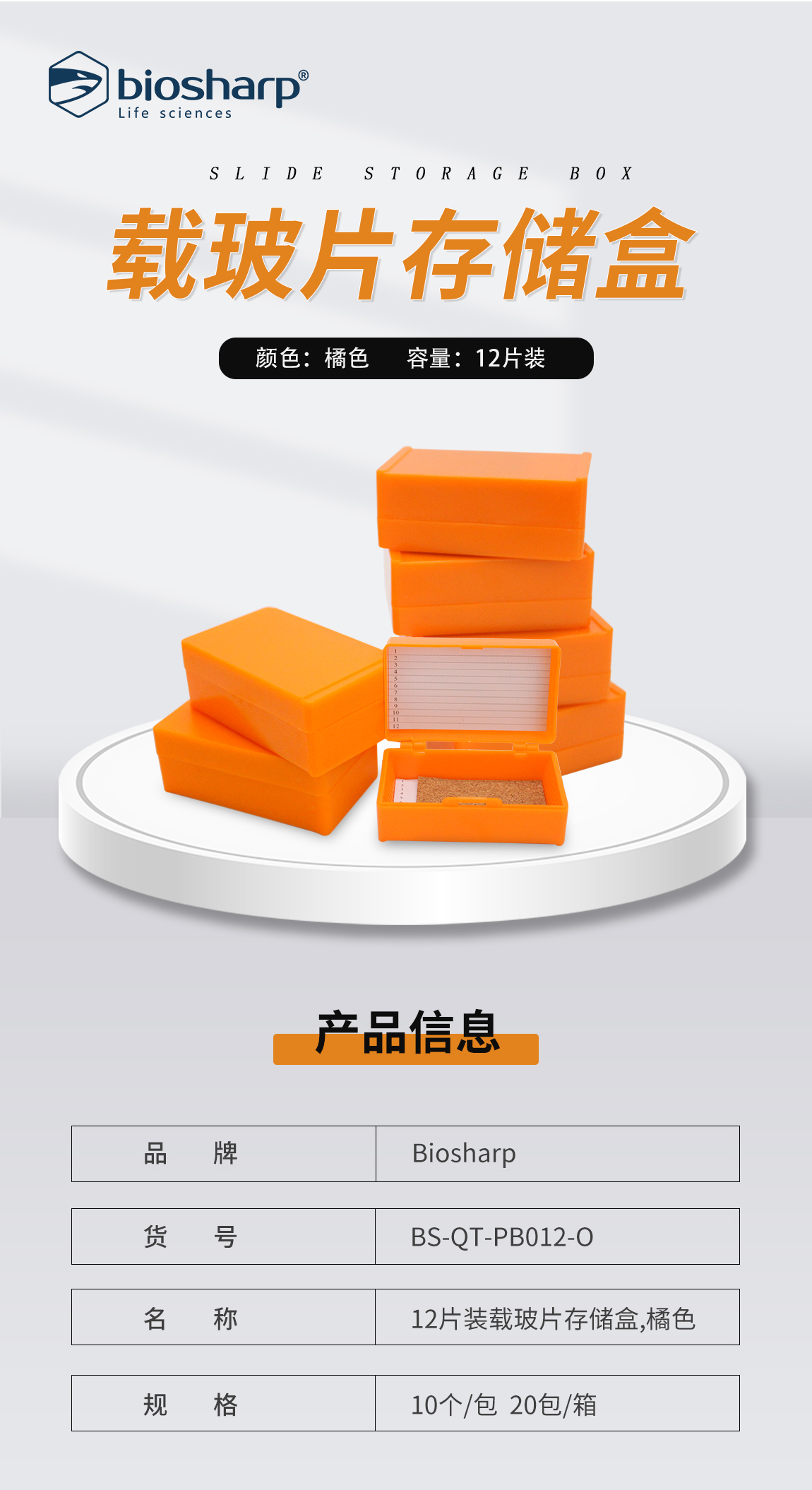 12片装载玻片存储盒,橘色 BS-QT-PB012-O