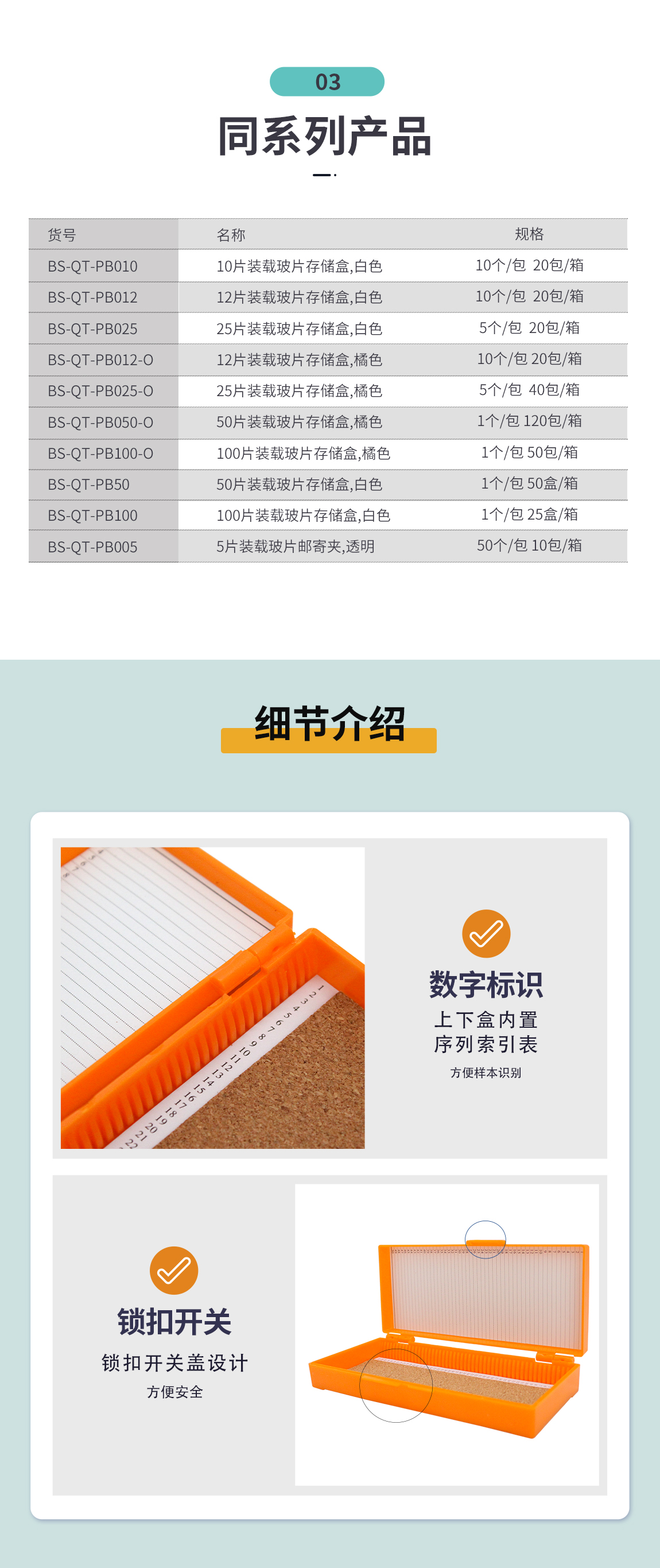 50片装载玻片存储盒,橘色 BS-QT-PB050-O