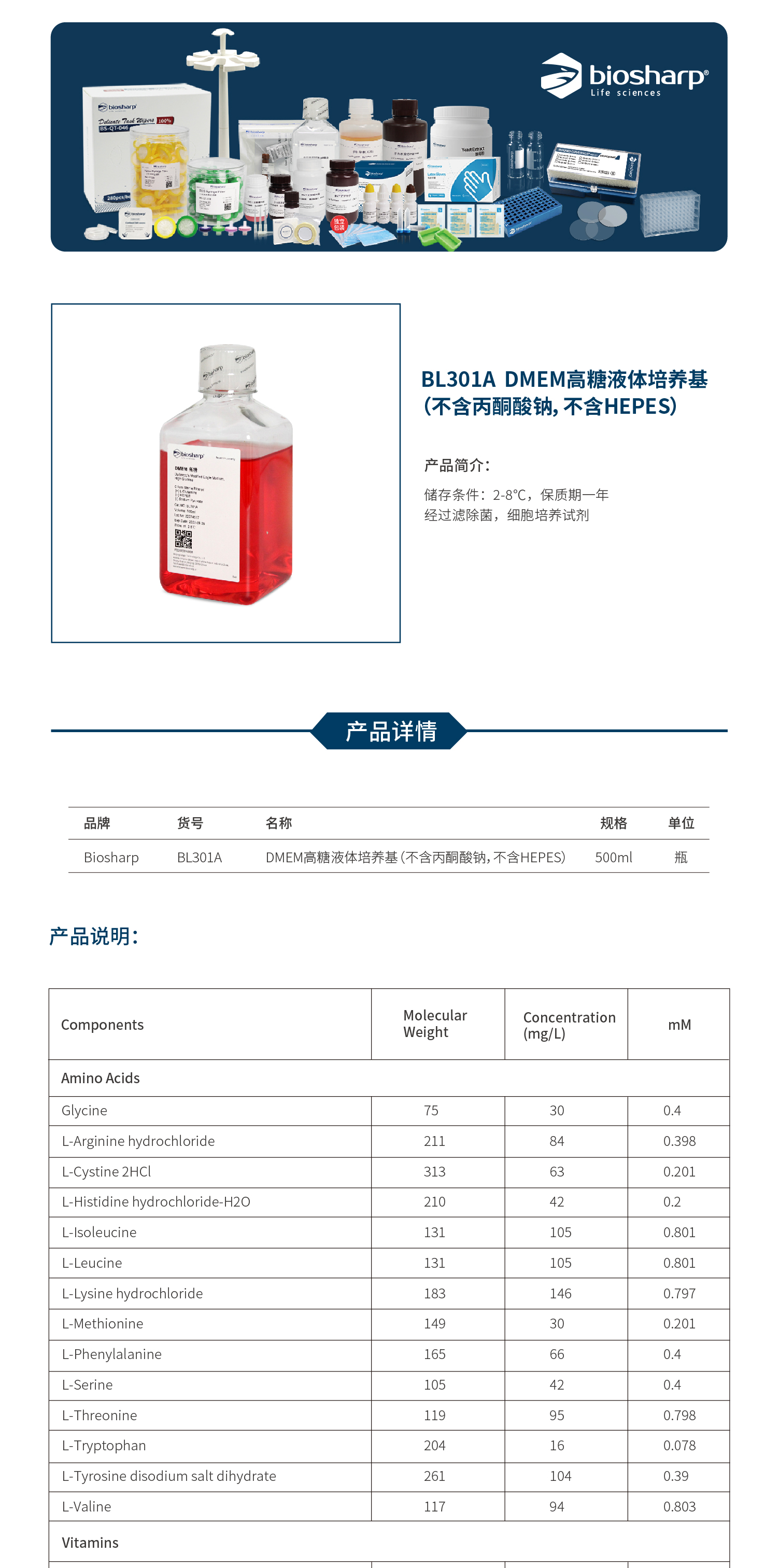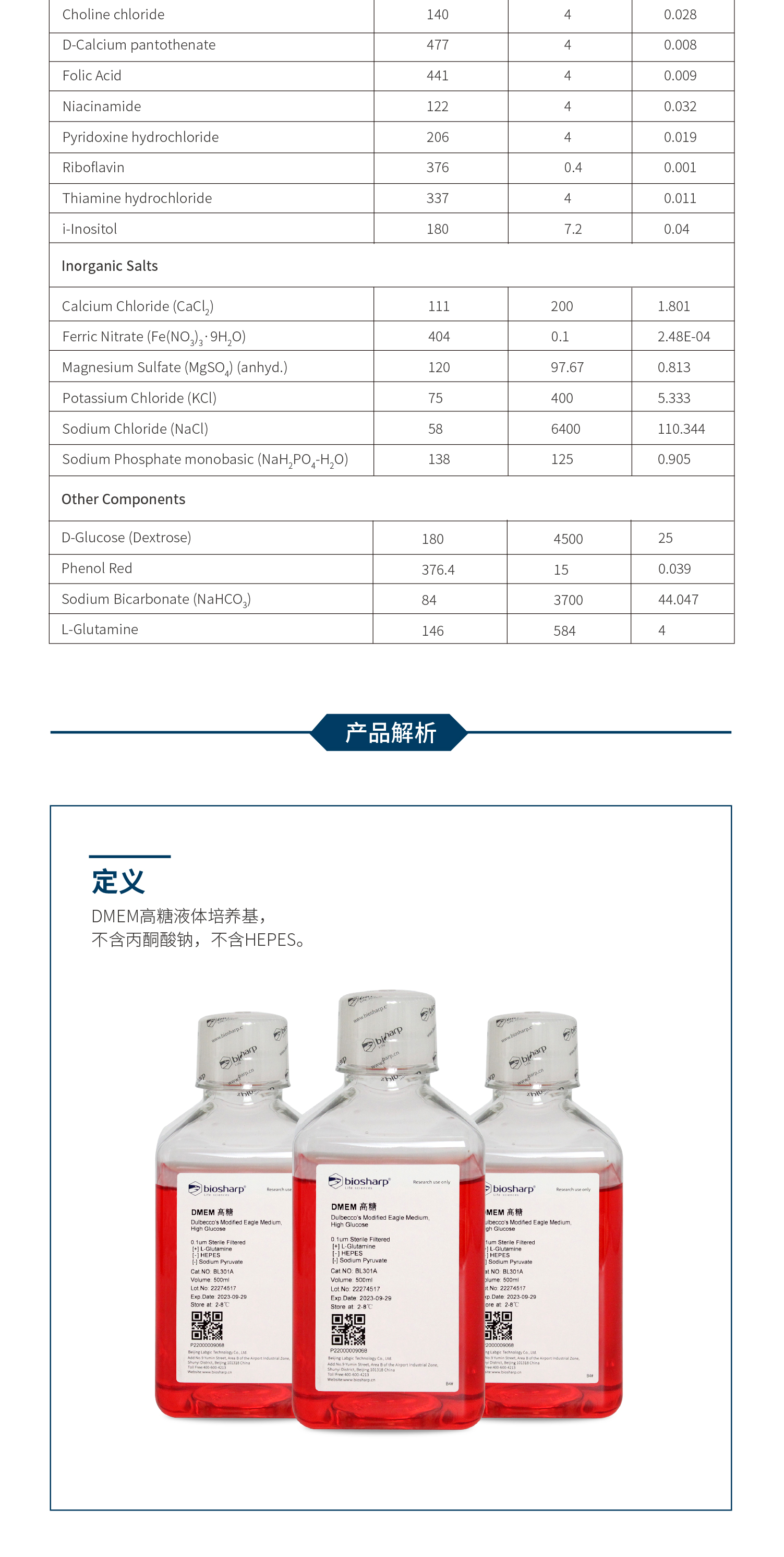 DMEM高糖液体培养基(不含丙酮酸钠,不含HEPES) BL301A