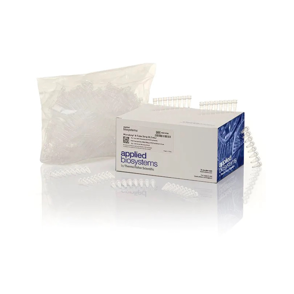 Applied Biosystems™ MicroAmp™ 8 联管优化设计与 0.2 mL 热循环仪(如 Veriti™96 孔热循环仪、GeneAmp™ PCR 系统9700 和 Applied Biosystems™2720 热循环仪)配合使用实现精确 PCR。