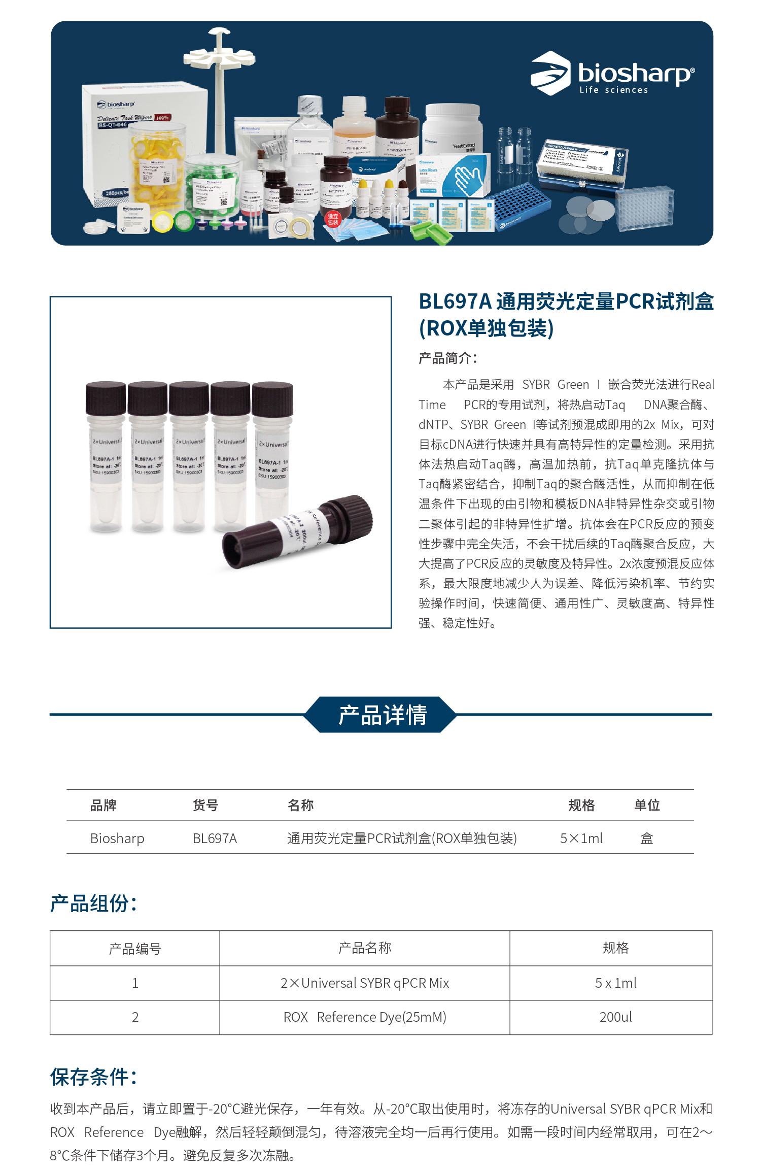 通用荧光定量PCR试剂盒(ROX单独包装) BL697A