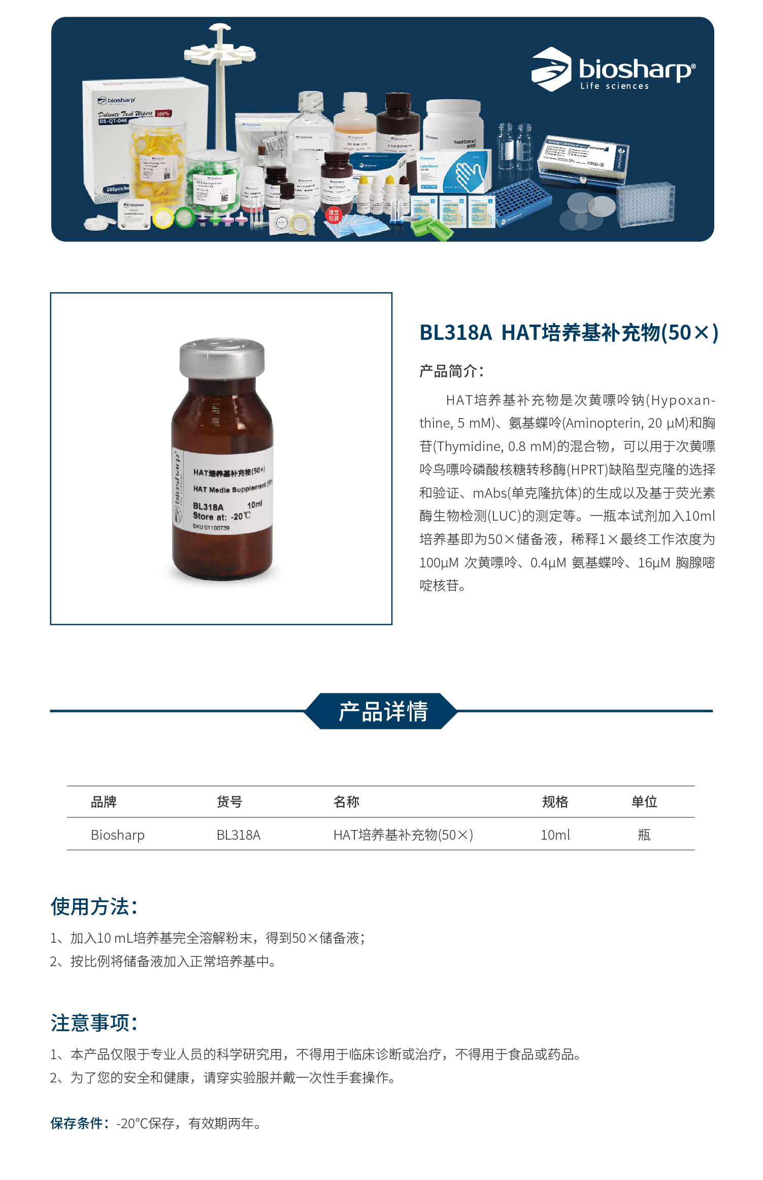 HAT培养基补充物(50×) BL318A