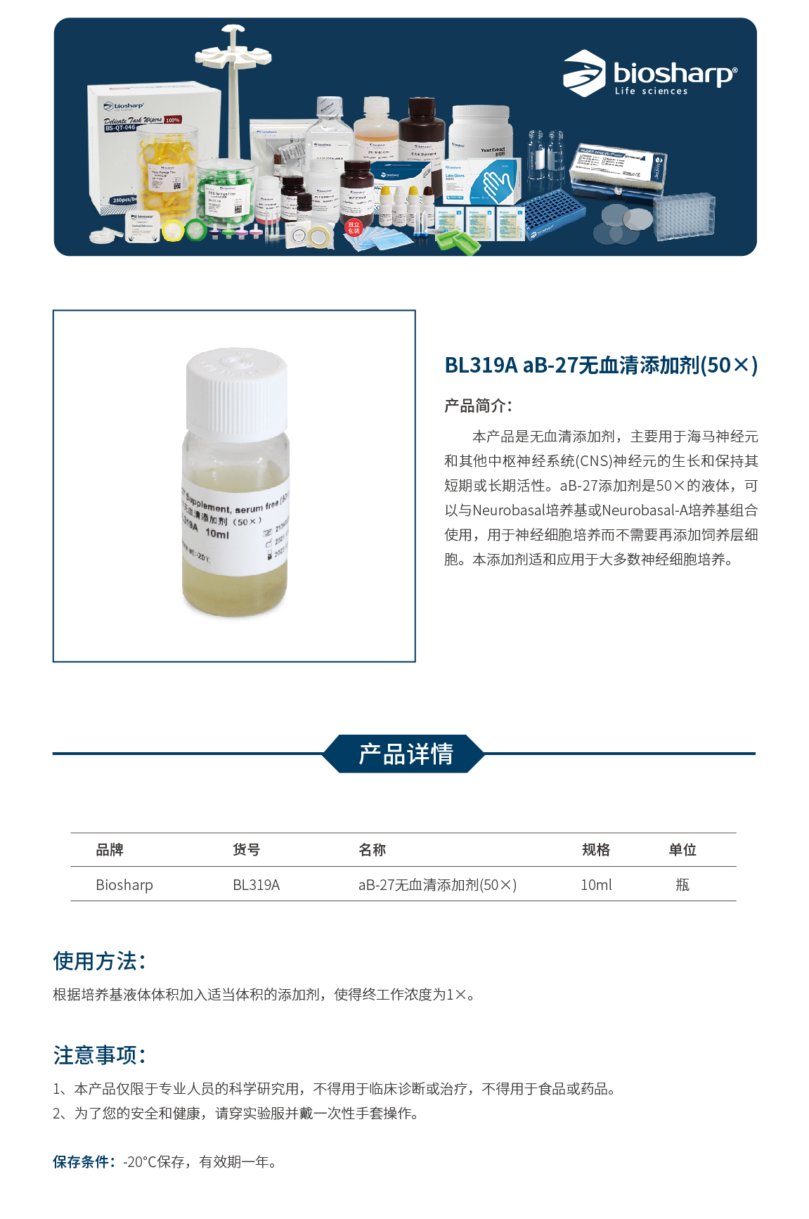aB-27无血清添加剂 BL319A