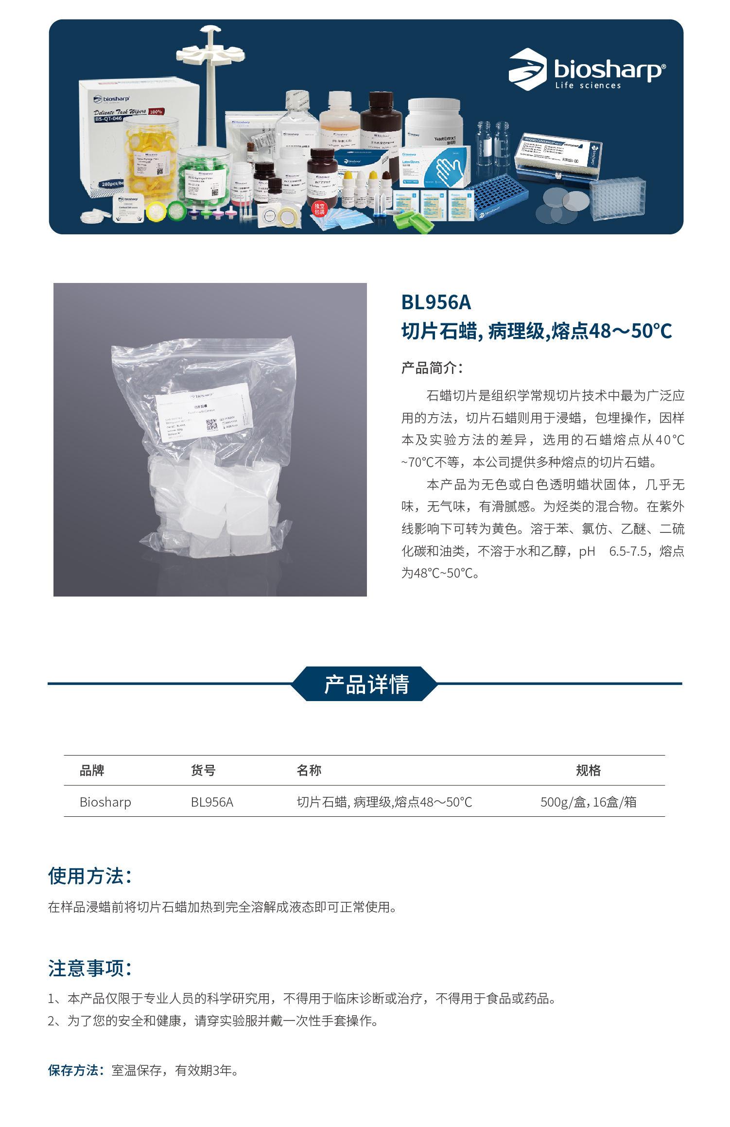 切片石蜡, BL956A