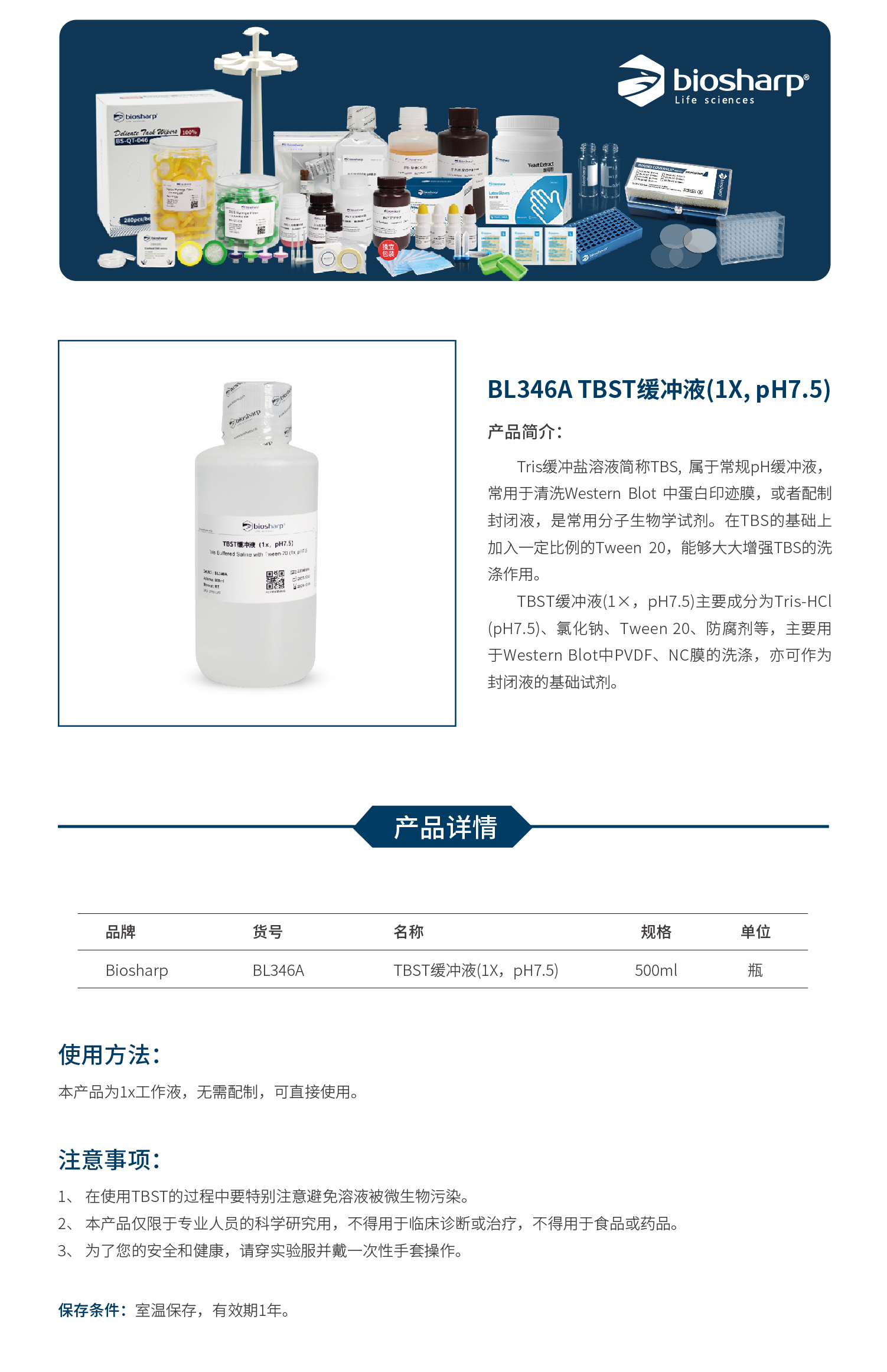 TBST缓冲液(1X,pH7.5) BL346A