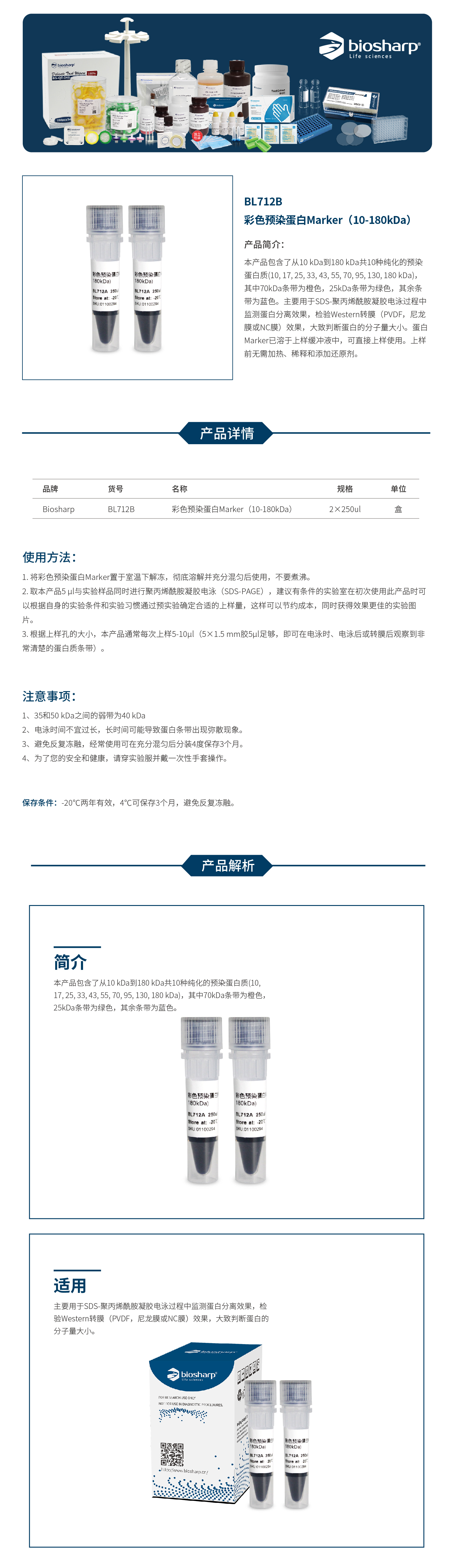 彩色预染蛋白Marker(10-180kDa) BL712B