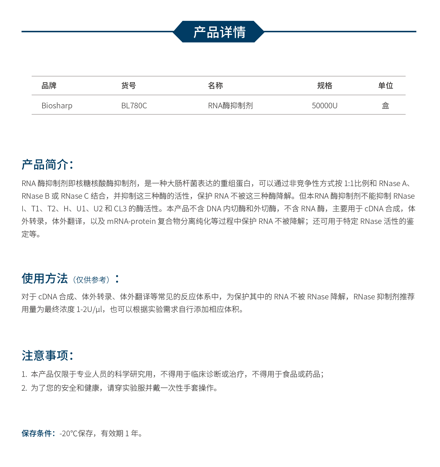 RNA酶抑制剂 BL780C
