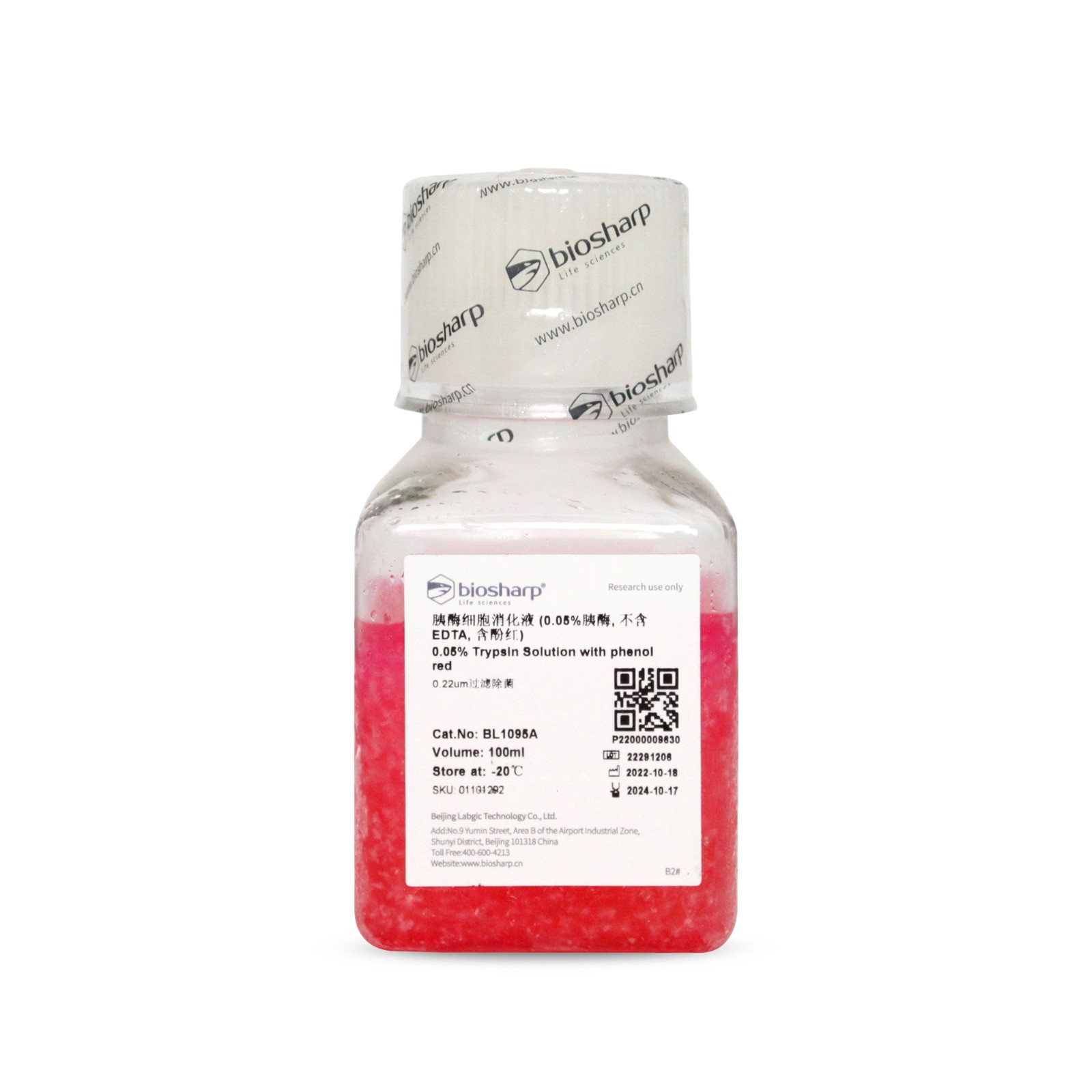 胰酶细胞消化液(0.05%胰酶,不含EDTA,含酚红) BL1095A