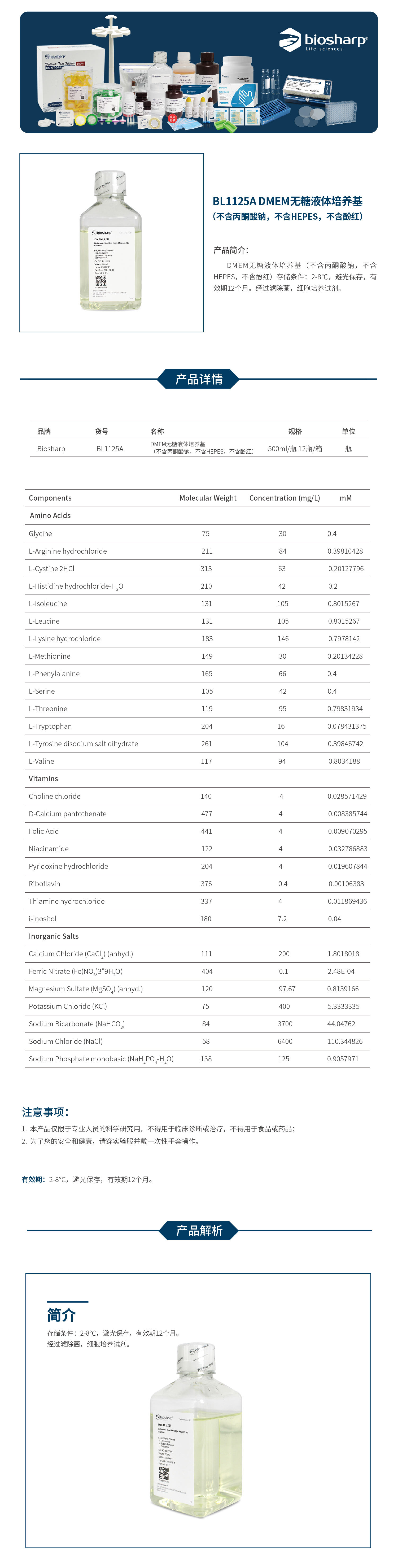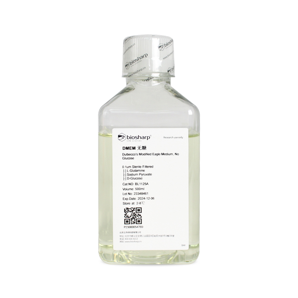DMEM无糖液体培养基(不含丙酮酸钠,不含HEPES,不含酚红) BL1125A