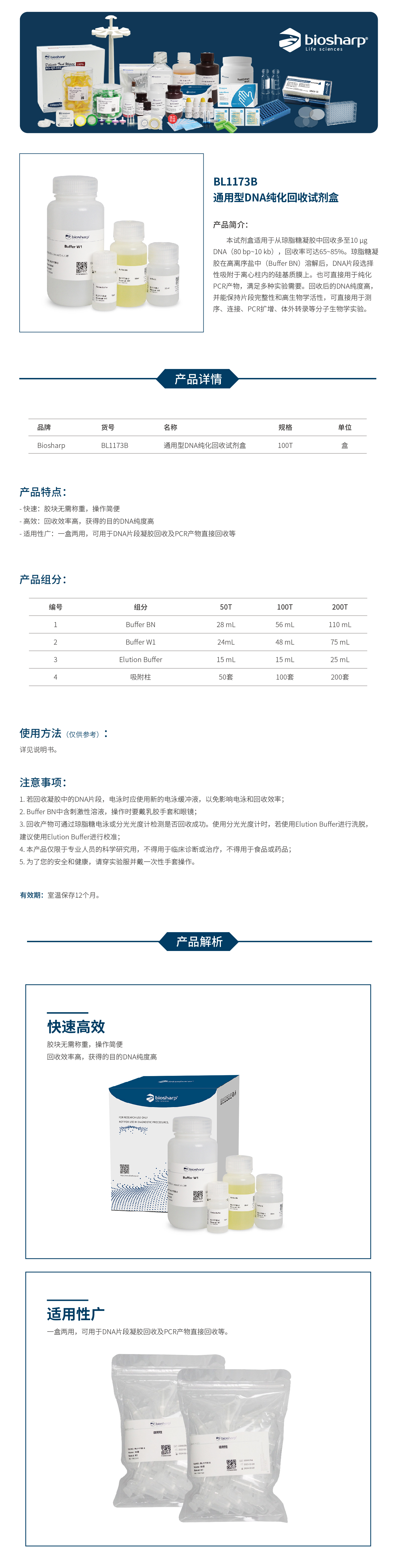 通用型DNA纯化回收试剂盒 BL1173B