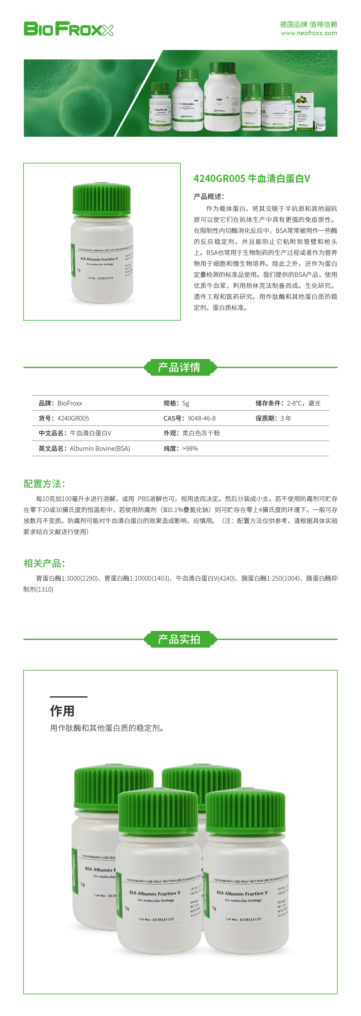 牛血清白蛋白VBSA(AlbuminBovine) 4240GR005