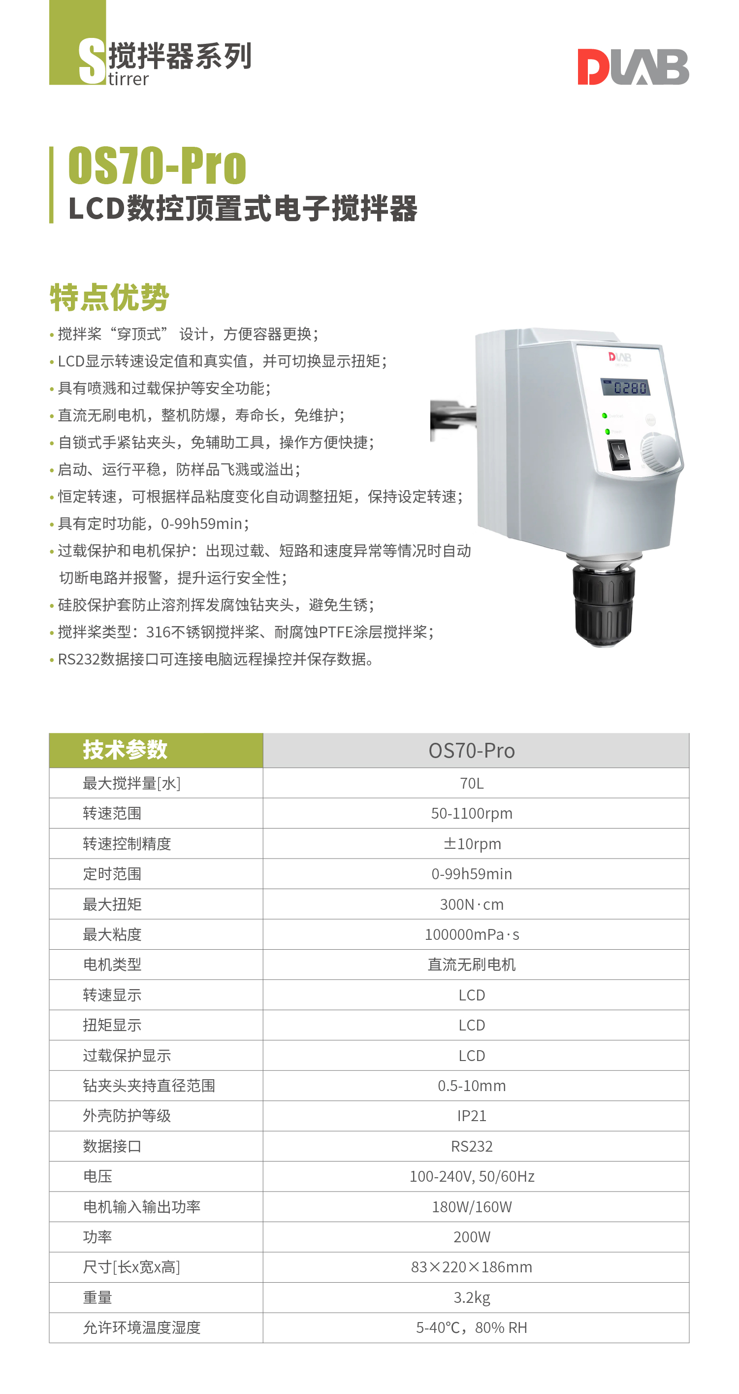 LCD数控顶置式强力电子搅拌器主机 OS70-Pro