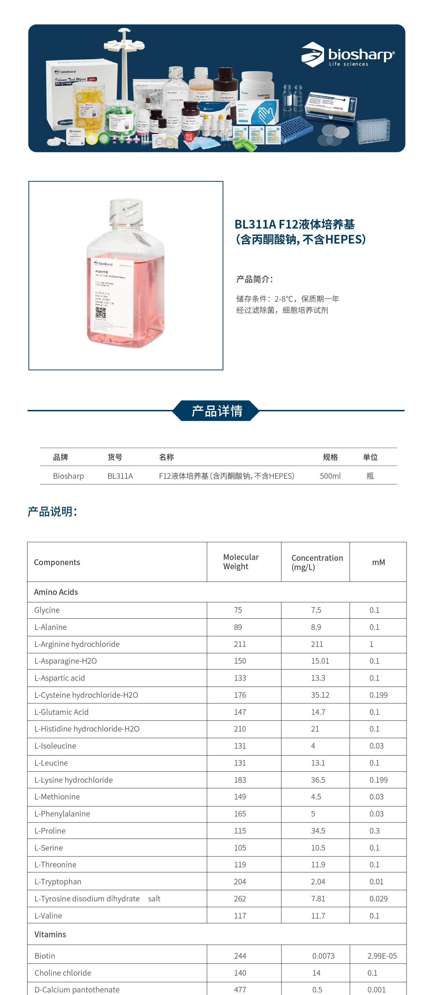 F12液体培养基(含丙酮酸钠,不含HEPES) BL311A