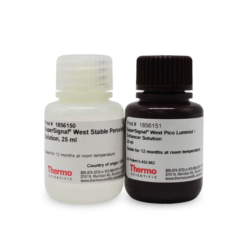 Thermo Scientific SuperSignal West Pico 化学发光底物是一种增强型化学发光 (ECL) 辣根过氧化物酶 (HRP) 底物,可通过Western印迹分析检测皮克至高飞克水平的蛋白。