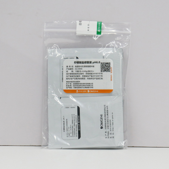 用于免疫组织化学染色前的抗原修复。 主要成分包括柠檬酸、柠檬酸钠。 室温保存,有效期24个月。 使用时,每袋试剂打开后应尽快一次性配制。