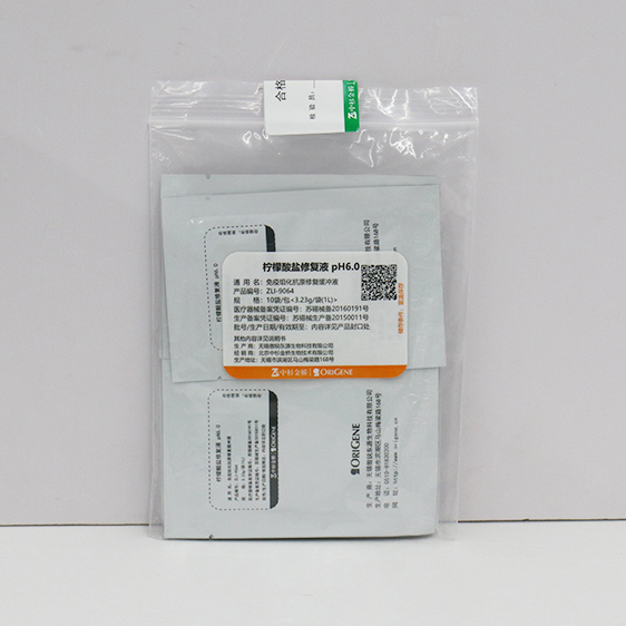 用于免疫组织化学染色前的抗原修复。 主要成分包括柠檬酸、柠檬酸钠。 室温保存,有效期24个月。 使用时,每袋试剂打开后应尽快一次性配制。
