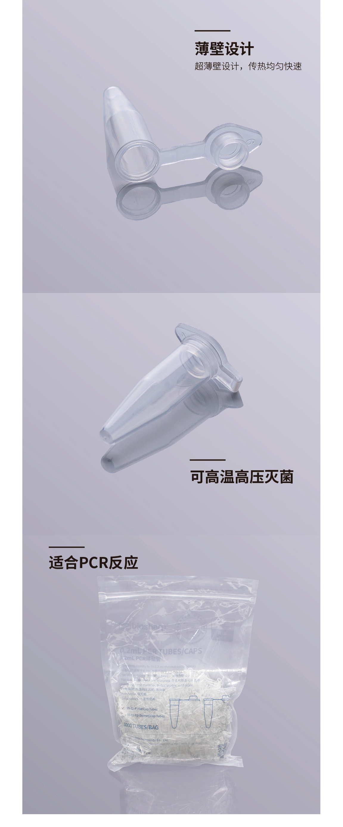 0.2ml平盖薄壁管 BS-02-P