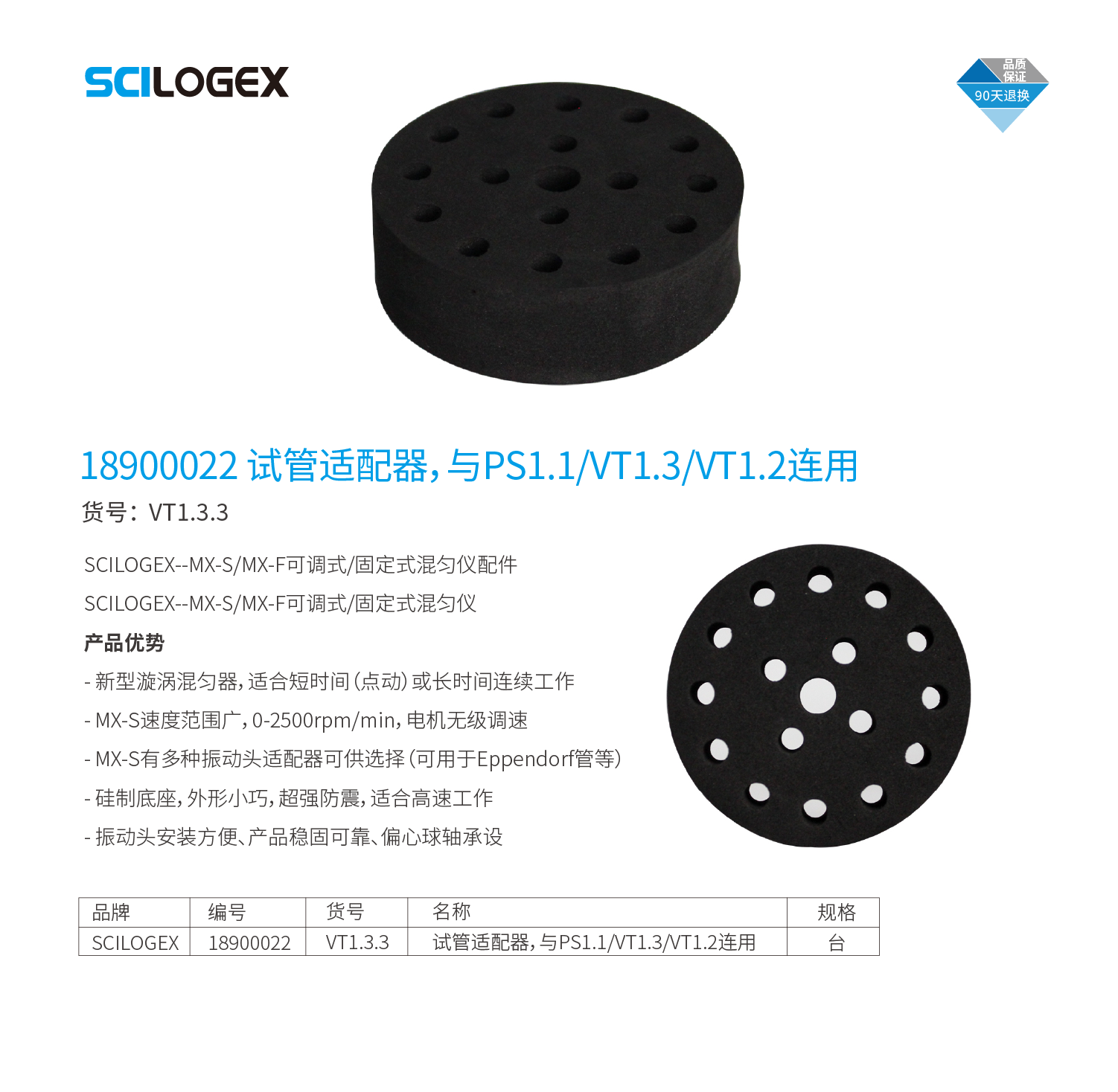 [VT1.3.3]试管适配器,与PS1.1/VT1.3/VT1.2连用 18900022