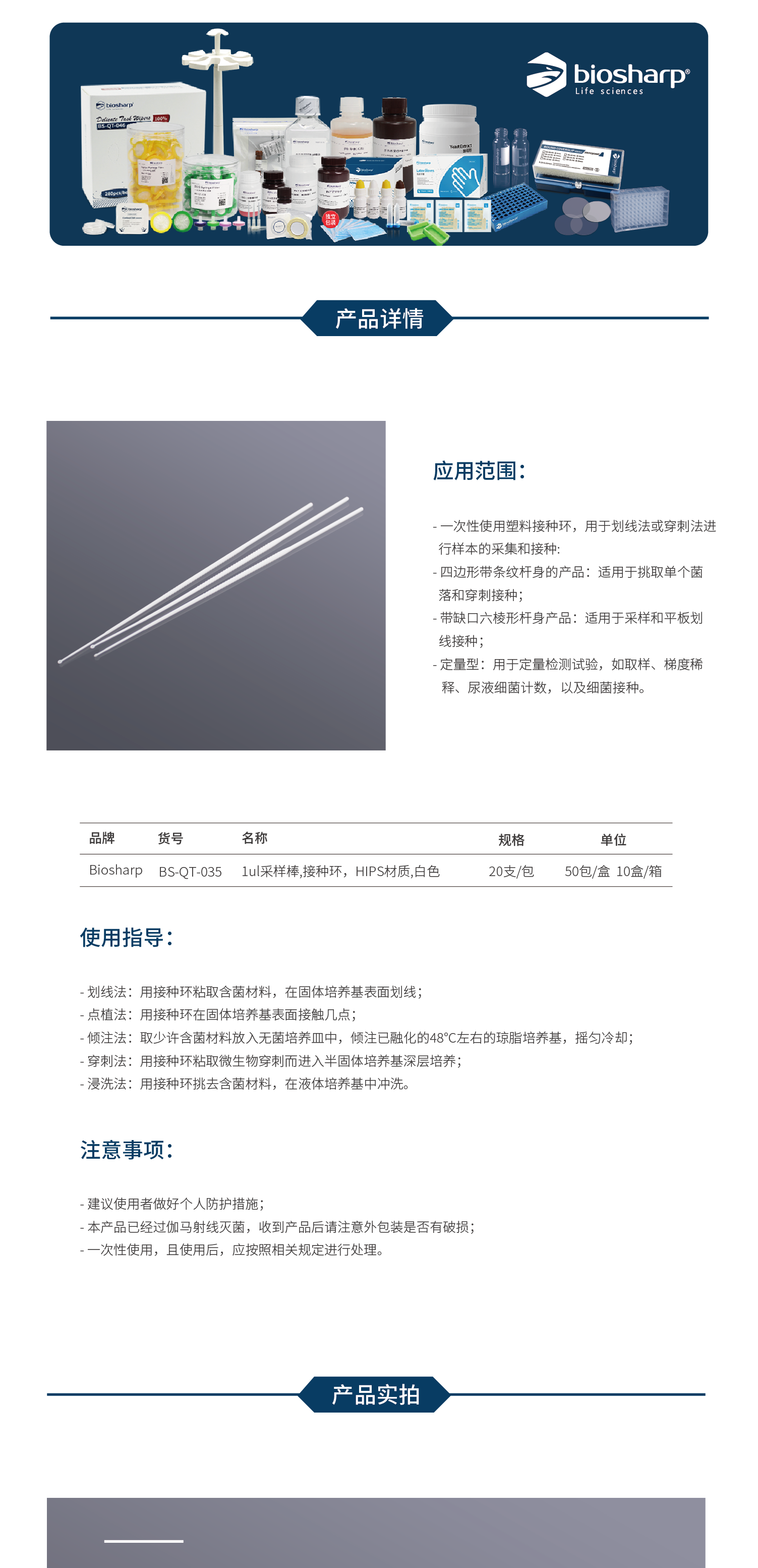 1ul采样棒/接种环,HIPS材质,白色 BS-QT-035