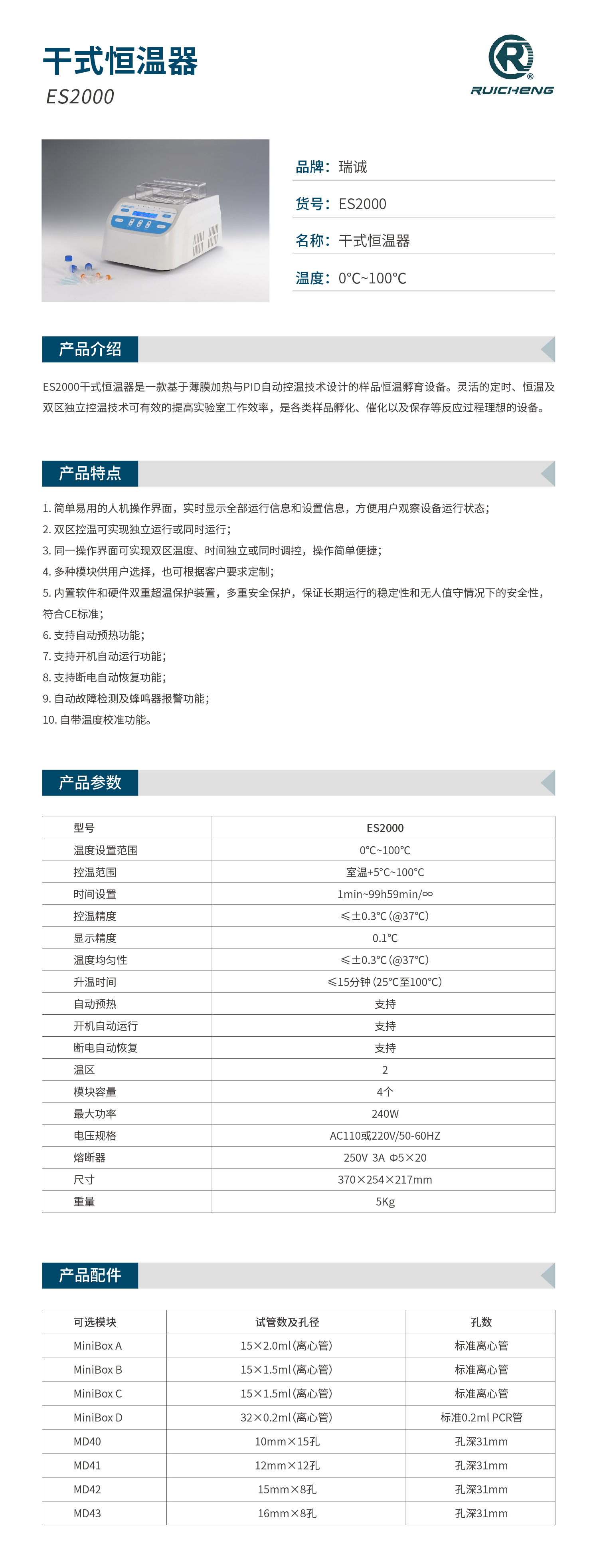 ES2000干式恒温器是一款基于薄膜加热与PID自动控温技术设计的样品恒温孵育设备。灵活的定时、恒温及双区独立控温技术可有效的提高实验室工作效率,是各类样品孵化、催化以及保存等反应过程理想的设备。
