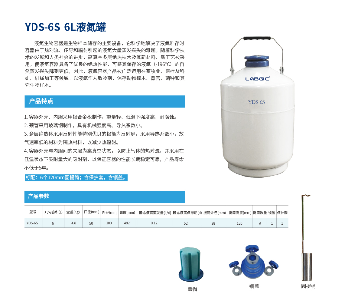 6L液氮罐,50mm口径 YDS-6S