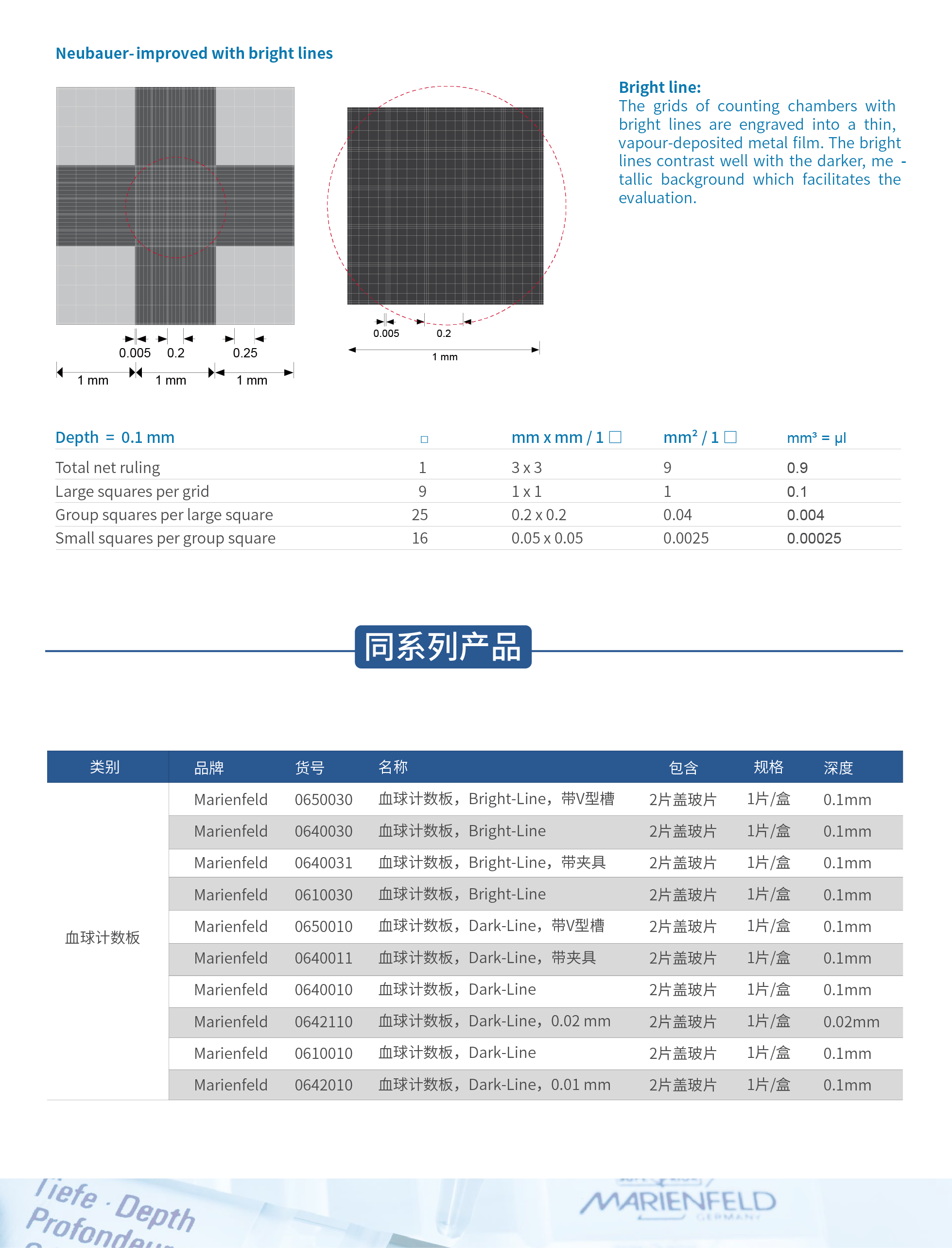 血球计数板,Bright-Line,带V型槽 0650030
