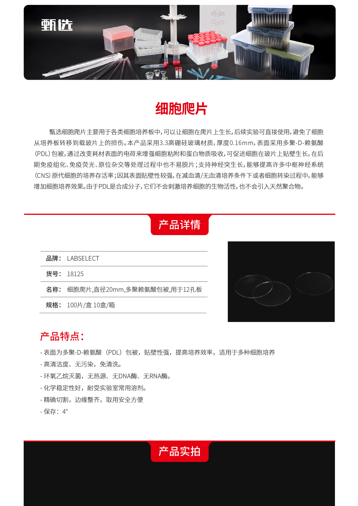 细胞爬片,直径20mm,多聚赖氨酸包被,用于12孔板 18125
