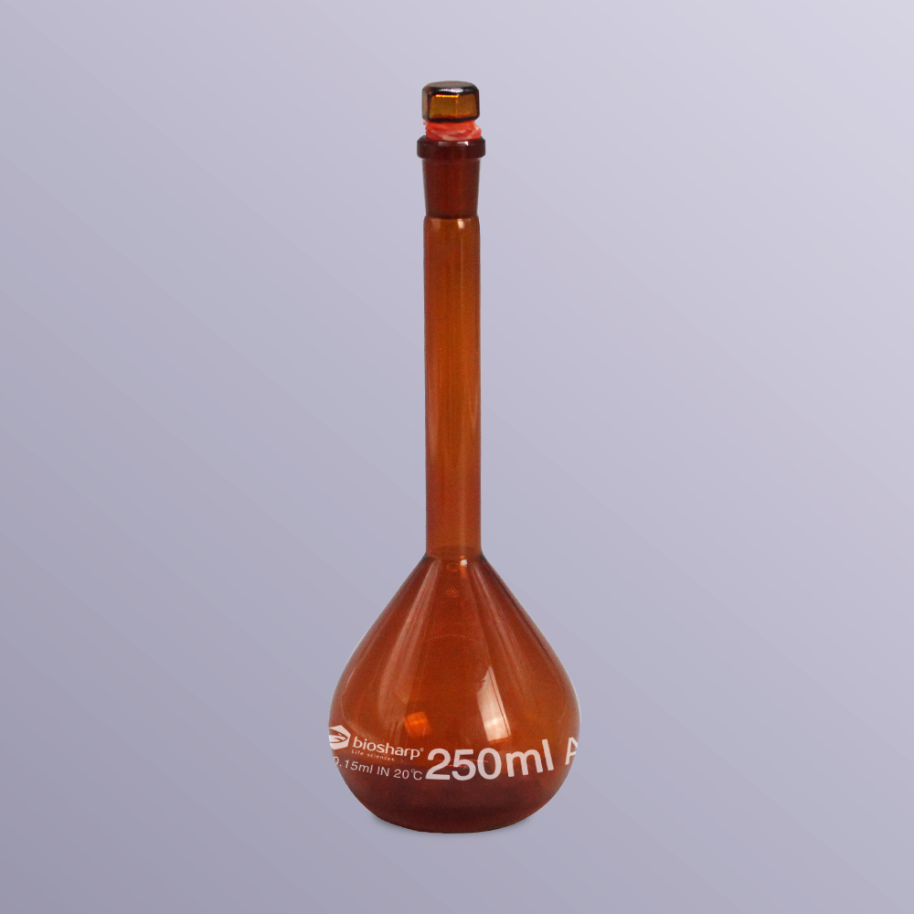250ml琥珀色容量瓶,带玻璃塞 BS-VF-250-A