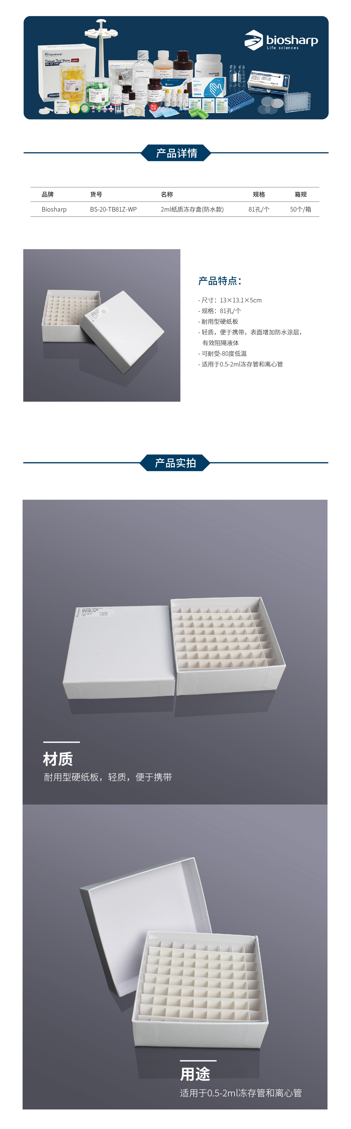 2ml纸质冻存盒(防水款) BS-20-TB81Z-WP