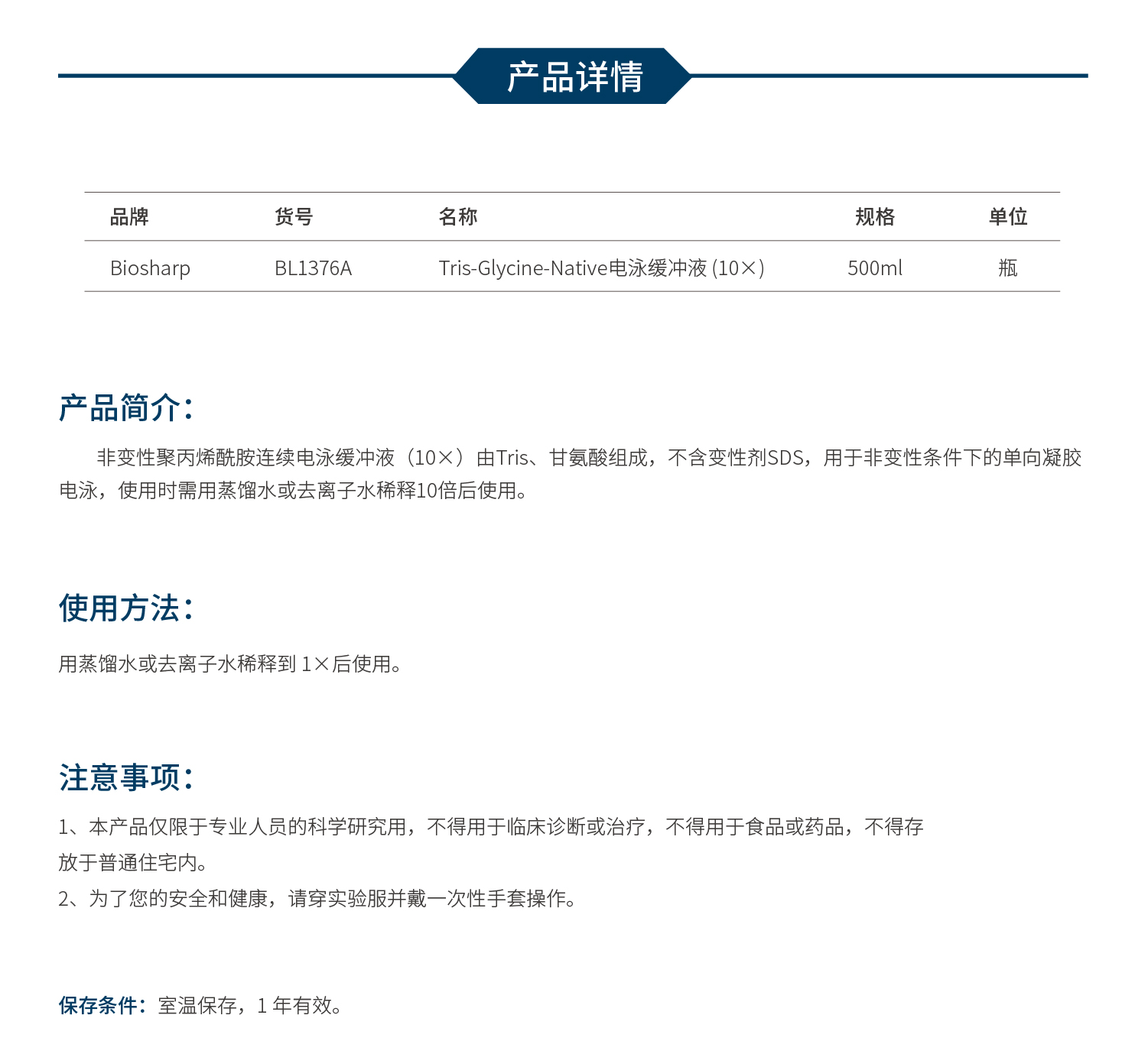 Tris-Glycine-Native电泳缓冲液 BL1376A