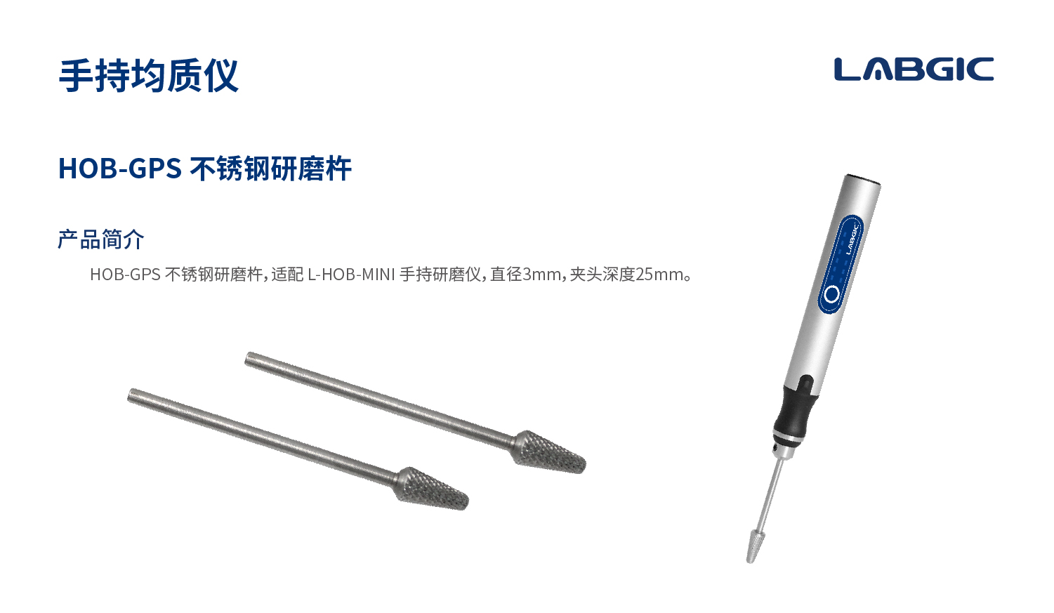 HOB-GPS 不锈钢研磨杵,适配 L-HOB-MINI 手持研磨仪,直径3mm,夹头深度25mm