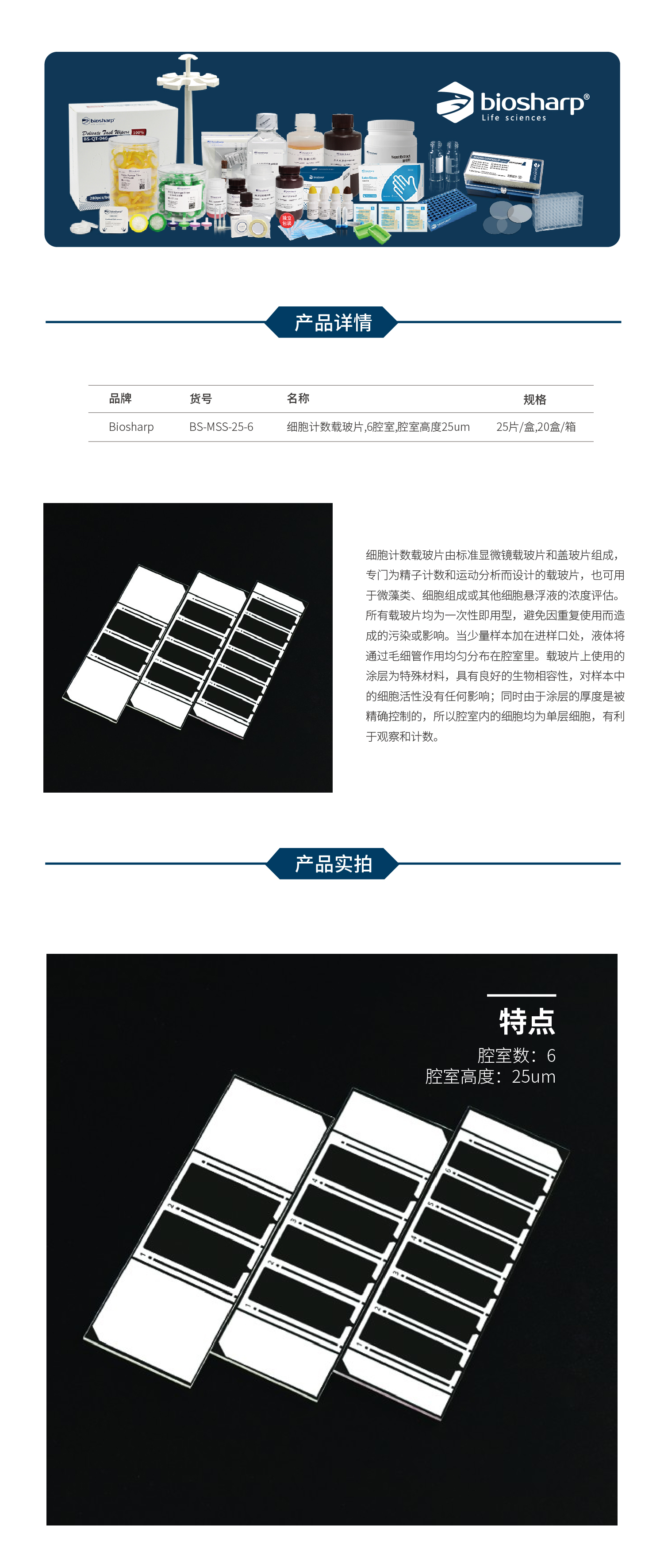 细胞计数载玻片,6腔室,腔室高度25um BS-MSS-25-6