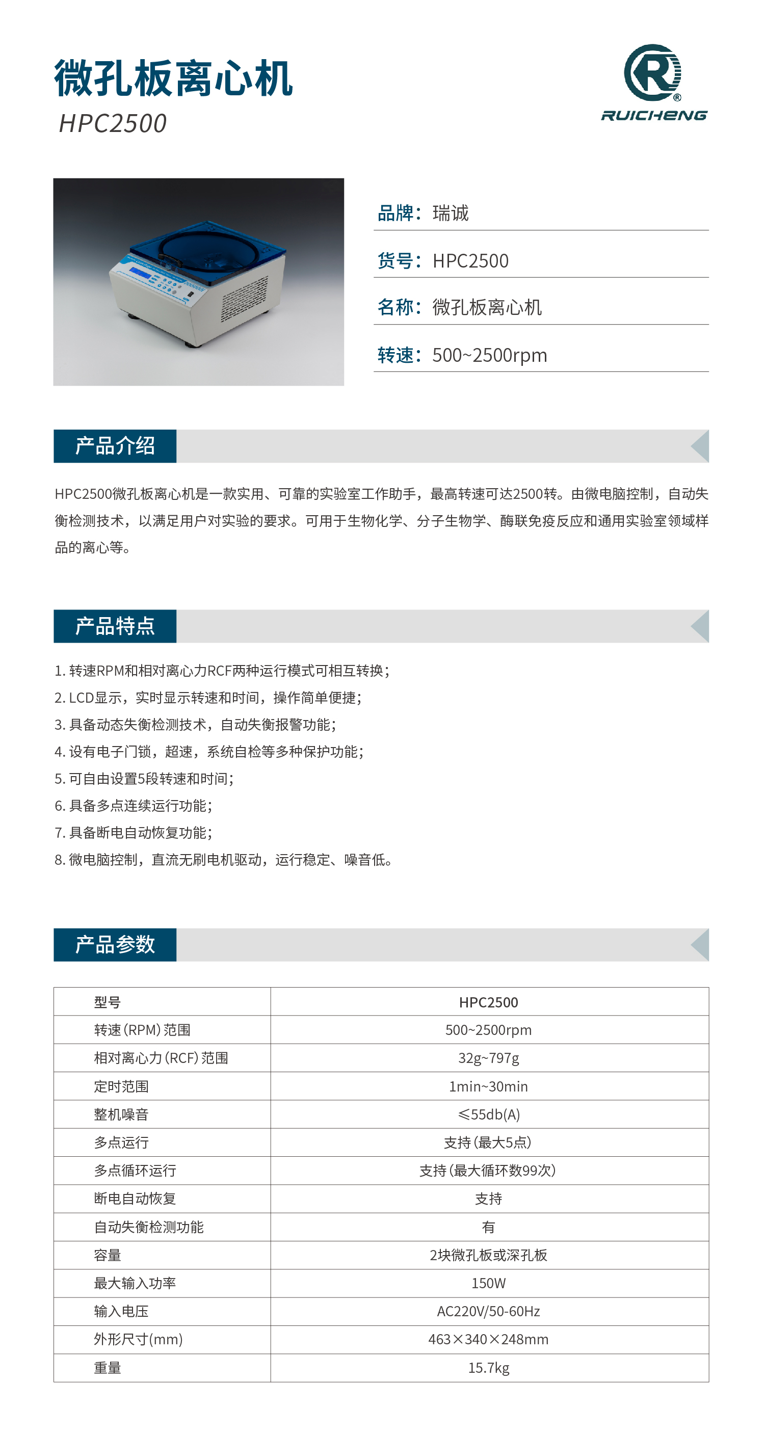 HPC2500微孔板离心机是一款实用、可靠的实验室工作助手,最高转速可达2500转。由微电脑控制,自动失衡检测技术,以满足用户对实验的要求。可用于生物化学、分子生物学、酶联免疫反应和通用实验室领域样品的离心等。