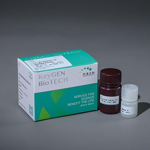 细胞周期(cell cycle)是指连续分裂细胞从一次有丝分裂结束到下一次有丝分裂结束所经历的整个过程。在这个过程中,细胞遗传物质复制并加倍,且在分裂结束时平均分配到两个子细胞中去。细胞周期又可以分为间期(interphase)和有丝分裂期(M phase),细胞间期又常划分为休眠期(G0),DNA合成前期(G1),DNA合成期(S),DNA合成后期(G2),整个周期可表示为G1→S→G2→M。DNA周期检测可用来反应细胞周期的各个期的状况,即细胞增殖状况。利用细胞内DNA能够和荧光染料(如碘化丙啶PI)结合的特性,细胞各个时期其DNA含量不同从而结合的荧光染料不同,流式细胞仪检测的荧光强度也不一样。细胞发生凋亡时,由于胞浆和染色质浓缩、核裂解,产生凋亡小体,使细胞的光散射性质发生变化。在细胞凋亡的早期,细胞对前向角光散射的能力显著降低,对900角光散射的能力增加或没有变化。在细胞凋亡的晚期,前向角和900角光散射的信号均降低。因此可通过流式细胞仪测定细胞光散射的变化观察凋亡细胞。用 PI对细胞进行染色,凋亡细胞由于总DNA量降低,于正常G0/G1细胞群前出现DNA低染细胞群,即G1峰前出现亚二倍体峰(sub-G1),细胞凋亡群。本试剂盒可应用于培养细胞(悬浮、贴壁)的DNA含量(细胞周期)检测。